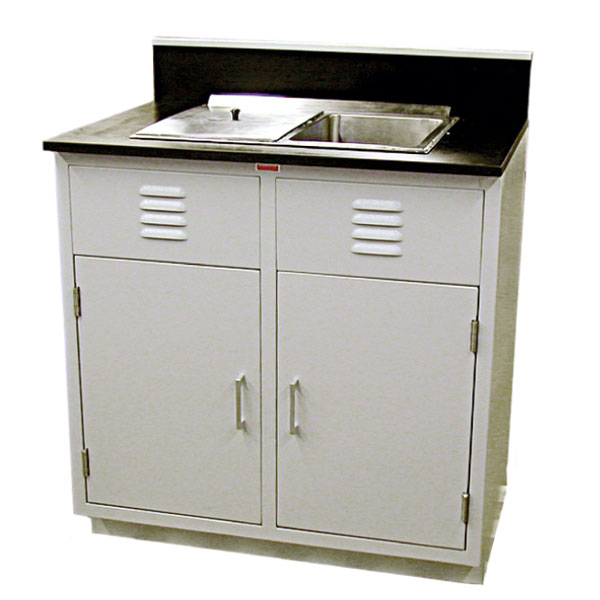 Boilout bench is constructed of heavy gauge sheet steel with added structural supports to insure the secure containment of your boilout unit. Bench contains two front doors with louvers to allow for proper air circulation throughout heated boilout unit. The piece is coated in a durable, baked finish. Shipped with 6” Backsplash, may be ordered with 6” Riser option at additional cost.