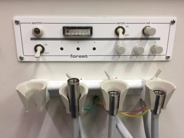 – Handpiece tubing is fitted for one slow speed and two high speed (non-fiber optic) handpieces