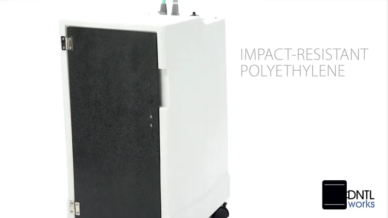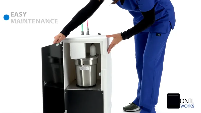 Ideal for mobile dentistry, and in-office dental suction applications, the Mobile Vacuum Features a powerful suction motor, waste container, front-mounted controls, and dual hose design (saliva ejector and HVE). The compact, wheeled cabinet makes the unit easy to move between operatories or for quick, convenient storage.