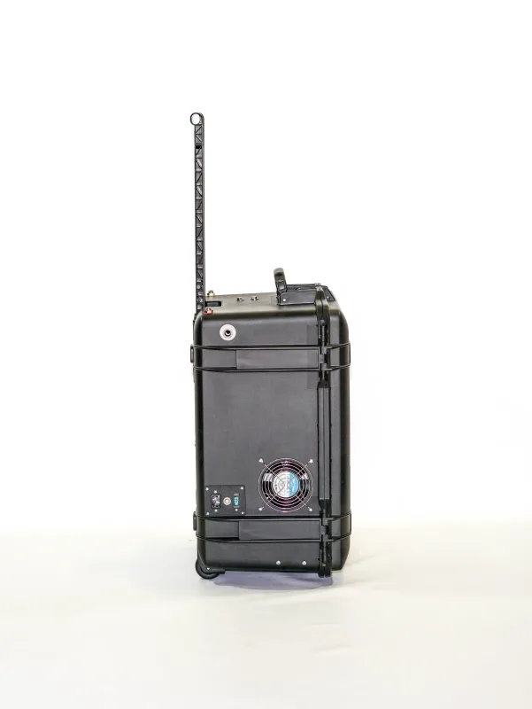 Lightweight / Rugged case with handle and wheels for easy portability.